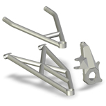 The front suspension consists of double A-arm design. The arms are available as either a tubed arm, or a full boxed arm. The uprights are designed for a 2" Hollow Bolt-On Spindle. The rear consists of a three link trailing arm and these are available as either tubed or boxed.